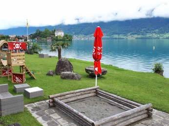 Enjoy relaxing times at the welcoming, manageably sized lido right on Lake Brienz. The views of the sparkling waters and the majestic mountain chain are unique. There is also a beautifully inviting lawn.