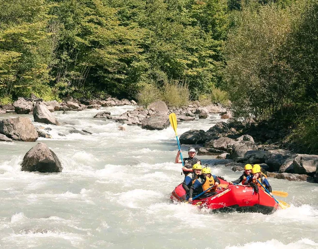 - Minimum age: Family rafting 8 years of age, rafting Simme river 10 years of age, rafting Lütschine river 14 years of age