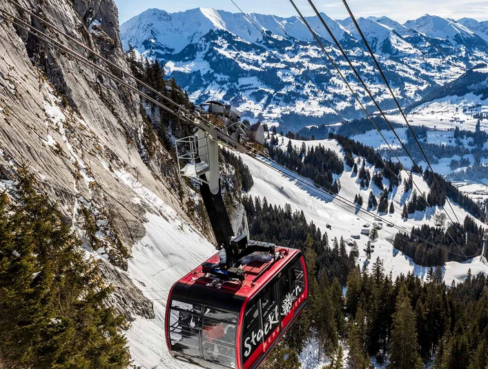 Enjoy sensational views when you ride the Stockhornbahn. Reach the summit of the Stockhorn in just 20 minutes. Thanks to the magnificent views throughout the ascent, the entire trip is an experience to savour. Once at the summit station, you will be greeted by commanding views and bracing mountain air. An excursion to the Stockhorn pays dividends at any time of year.