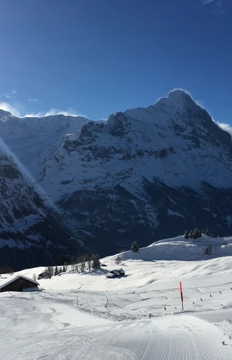 Der Alpwäg Trail startet beim Hotel Wetterhorn und entspricht im ersten Teil dem Wetterhorn Trail. Beim 7.Schürli (Pkt. 1342) biegt der Trail nach links ab und führt durch das verschneite Bärgelbachtobel und via Eggweid hinüber zum Alpwäg. Links der Piste beginnt nun der Abstieg Richtung Mühlebach. Nach dem Überqueren der Bergstrasse trifft man auf den Mühlebach Trail. Diesem folgt man in leichtem Abstieg nach Grindelwald.