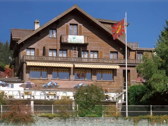 Hinfahrt: Mit Bahn nach Interlaken West, weiter mit Bus bis Beatenberg, Waldegg