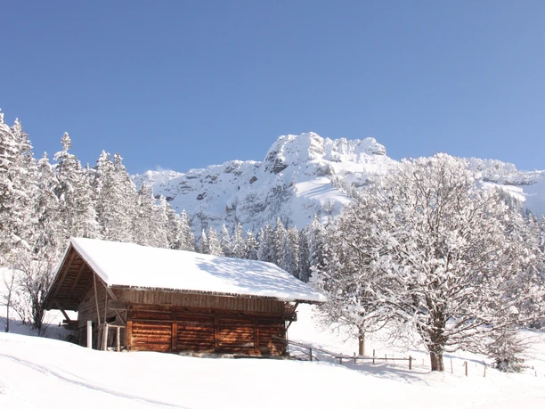 The Dünzenegg Trail leads shortly from the starting point first up to the water reservoir. It then goes moderately steeply, alternating through forest and over meadows to the Stampfhütte. From there you have a magnificent view of Lake Thun and the snow-covered Bernese Alps. The path then leads almost flat to Underi Matte, where the shorter Rüeggers Trail branches off to the left. The longer Dünzenegg Trail leads to the Oberi Matte alpine hut. Then it goes through light forest to Schonegg. From the edge of the forest, there is a wonderful view into the Emmental. It continues up to Dünzenegg and then along the alpine road to the forest entrance. The trail passes Rüeggers Lischenhütte, a place of absolute silence. From Zenggisboden, follow the path back.