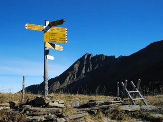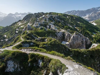 From the mountain station Leiterli, we follow the high-altitude trail towards Trütlisberg Pass. At the junction P.1983 we turn right and soon after ascend the summit of Stübleni on the left (it can also be crossed below). From the summit, there is a great view of the Gryden, a term probably derived from Chride (chalk). The sinkholes (also called dolines) formed through the slow dissolution of the white gypsum rock by rain and underground drainage.