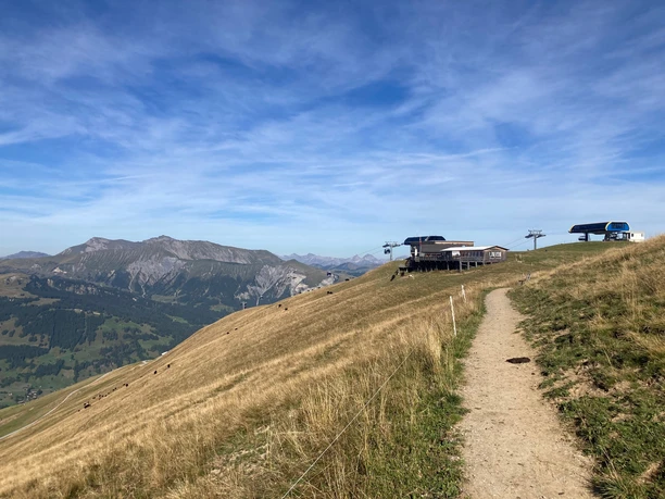 Next follows a section with the character of a panoramic path leading up to the Metschstand viewpoint. Here you encounter the "Stand-Xpress" cable car, newly opened in 2014. The 10-person gondola lifts skiers in winter in just a few minutes from the Lenk valley floor up to the Metsch ski area. The summer operation of the cable car and the operation of the Standhütte restaurant are initially planned for the main holiday season in July and August. The newly created starting point is a valuable addition to summer tourism in Lenk.