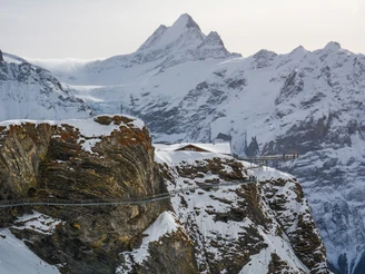 Von der Bergstation First geht es auf dem breiten Winterwanderweg in leichtem Auf und Ab (die können mit dem Schlitten gefahren werden) zum Bachsee. Am Ende des im Winter kaum wahrnehmbaren Bachsee wird der Weg merklich steiler. Ist die Passhöhe Gassenboden erreicht, kann man optional noch die letzten 120 Höhenmeter auf den Gipfel des Faulhorn steigen. Den Schlitten kann man dabei gerne bis ca. 60 m unter den Gipfel mitziehen – bis dahin ist der Wanderweg präpariert. Vom Gipfel des Faulhorns hat man einen herrlichen Blick auf den Brienzersee und darüber hinaus in Richtung Schweizer Mittelland. Ab der Passhöhe geht die Schlittenabfahrt los, zuerst harmlos. Doch bald schon geht’s in die erste scharfe Kurve. Immer wieder lassen kurze steile Abschnitte den Schlitten ordentlich beschleunigen, so dass man das Bremsen sicher beherrschen und ausserdem beim Anhalten am Wegesrand stehen bleiben sollte und nicht auf der Piste. Ab der Bussalp bis Grindelwald Gaggi Säge verläuft die Strecke auf der Fahrstraße, auf welcher der Bus (für Autos verboten) fährt. Die Strecke ist zwar weniger anspruchsvoll, dennoch ist hier Vorsicht geboten, da Teile durch den Wald führen.