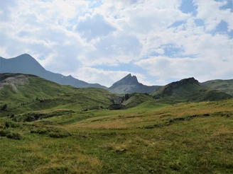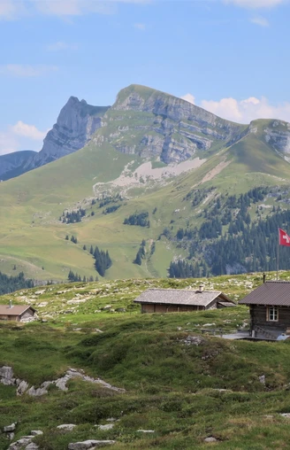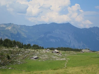 From the mountain station of the First cable car, it goes on a well-developed hiking trail to Bachalpsee, then up a steep mountain path to the Faulhorn. Over the Faulegg and the Fangisalp, you descend to the wide karst landscape of the Harzisboden. Both areas are part of the Bättenalp. The panoramic view is magnificent: to the east above the Axalp rise Wildgärst and Schwarzhorn, to the north stretches the chain of the Brienzer Rothorn, and in the west, the distinctive pyramid of the Schwabhorn is visible. In a wide arc, you reach Plangäu. Beautiful views of Lake Brienz and the Rothorn range open up on the further descent to the Werzisboden. An old cattle trail paved with large pebbles leads finally in numerous hairpin bends down through the forest to Iseltwald.