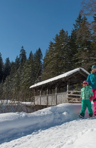 Those taking the route during the shortest winter days should choose the midday time to enjoy the sparse winter sun. The short sunshine duration in the midwinter has the advantage that the snow remains for a long time. Snow-covered fir trees and meadows and pastures covered with a thick layer of snow therefore shape the landscape – this is winter in its most beautiful form.