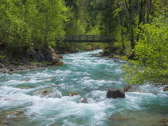 Schon am Ortsrand von Oey, bei der Chirelbrücke, kann der Asphalt verlassen werden. Ein sorgfältig angelegter Spazierweg führt durch herrlichen Mischwald direkt dem rauschenden Bergbach entlang. Auf halbem Weg zur Waldlichtung im Grund kreuzt man die nach Diemtigen abzweigende Bergstrasse. Von ganz besonderem Reiz sind die gurgelnden, glucksenden Wässerchen, die in der Sonne glänzenden Tümpel und die schöne Auenlandschaft am Weg nach Horboden. Auf einer gedeckten Holzbrücken überquert man den Chirel und steigt während kurzer Zeit recht steil durch den Wald an. Auf einem Forststrässchen gehts anschliessend bei sanftem Gefälle zur Cholerebrügg am Fildrich. Unterwegs prächtige Ausblicke zu der am gegenüber liegenden Talhang aufragenden Chilchflue, deren Nase weggesprengt wurde, um eine besser zugängliche Verbindung zum hinteren Teil des Tales zu schaffen. Der Weiterweg dem Ufer des Fildrich entlang über Wampfle–Säge entspricht dem idealen Wanderweg schlechthin. Weiter als 100 m entfernt man sich kaum je vom Talbach, der oberhalb Riedli ungenutzt dahinrauscht und mit seiner Melodie die Wandernden erfreut.