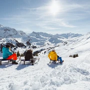 Schlitten, gutes Schuhwerk, der Witterung angepasste Kleidung, Handschuhe, Mütze und Helm, Verpflegung inkl. warmem Getränk, Notfallnumero.