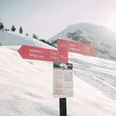 Der Weg ist mit rosa Richtungsanzeigern und Schneeschuh-Symbol signalisiert. Du befindest dich am Rande von Wildruhezonen und Wildtierschutzgebieten. Bitte halte dich an die Signalisation und verlasse die empfohlene Route nicht.