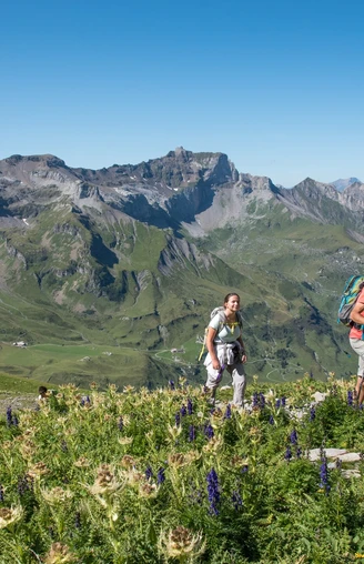 Nach einer Stunde wandern, auf dem äusserst aussichtsreichen Gratweg, erreicht man den Gipfel. Mit der Seilbahn geht’s runter nach Stechelberg.
