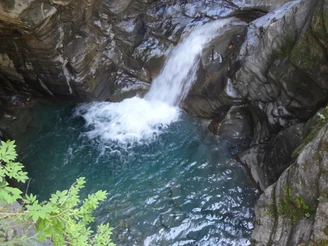 Vom Bahnhof Lenk gehts kurz abwärts zur Simmebrücke und ins Ortszentrum. Von der Kirche aus führt ein leicht ansteigendes Trottoir zum Eingang der Wallbachschlucht. Über Treppen und Stufen durchstreift man deren imposantesten Teil, welcher Einblicke in die auffälligen Erosionsformen vermittelt, die das Wasser im Laufe der Jahrtausende ausgewaschen hat. Nun auf gut ausgebautem Weg über viele Stufen im bewaldeten Schluchthang aufwärts zum Berghaus Wallegg. Einer kaum sichtbaren Wasserleitung entlang führt der sogenannte Wasserweg durch die bewaldete Grabenflanke zum Steg über den Bergbach und am Gegenhang steil hinauf zu den Weiden In der Siten. Erst führt ein Fahrweg, dann ein Pfad über blumenreiche, stellenweise sumpfige Bergmatten zum Undere, dann weiter zum Obere Lochberg. Die eindrückliche Moorlandschaft am Trütlisbergpass ist durchsetzt mit Knabenkräutern, Wollgräsern und der Arktischen Binse. Schöner Blick von der Passhöhe ins Wildstrubel- und Wildhorngebiet und ins Tal von Lauenen. Schneeweiss wirken die Gipsfelder der Gryde an der nahen Stübleni. Umfassender ist der Rundblick von der nahen Tube aus (2106 m; 15 min).