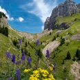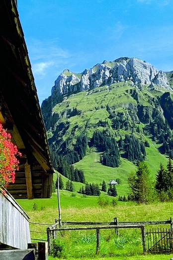 Von der Bus-Endstation Innereriz/Säge taleinwärts halten und hinter den Ferienhäusern auf gutem Stufenweg durch schattigen Wald ansteigen. Am Waldrand schöne Einblicke in die rötlich leuchtenden Moorwiesen des Naturschutzgebiets Rotmoos, zum Grüenenbergpass, dem Übergang nach Habkern, und zur markanten Sichle, dem Passübergang zum Thunersee. In weiten Schlaufen zieht sich der Alpweg steil hinauf zum Heimet Ober Breitwang. Prächtiger Ausblick zur Honegg und durchs Eriz westwärts. Ein guter Pfad quert unter den jäh aufragenden Flühen des Widderfeldes die Hochmulde von Hungerschwand. Hier blühen gelber und purpurner Enzian, heller und dunkler Eisenhut. Nach dem Gratübergang auf dem Alpsträsschen zur Wimmisalp. Schibengütsch und Schrattenflue setzen jetzt die landschaftlichen Akzente. Nun durch eine Felssturzzone, dann durch einen mit moosigen Blöcken durchsetzten Wald zu den Hütten von Gmeinenwängen.