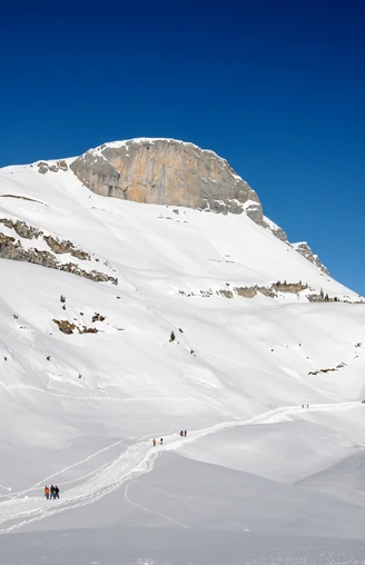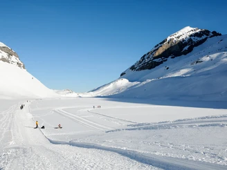 Von Kandersteg bringt Sie die Luftseilbahn Sunnbüel hinauf in das Winterwandereldorado. Die Luftseilbahn erreichen Sie von Kandersteg in einer halbstündigen Wanderung oder bequem mit dem Ortsbus. Von Sunnbüel aus nehmen Sie den historischen Weg zum Gemmipass in Angriff, der vor einigen hundert Jahren eine wichtige Verkehrsverbindung zwischen den Kantonen Bern und Wallis war. Zuerst ein kurzer Abstieg zur Ebene der «Spittelmatte», dann folgt der Aufstieg zum Berghotel Schwarenbach. Weiter führt die Wanderung in Richtung Daubensee und schliesslich zum Ziel, dem Gemmipass (2322 m.ü.M.). Hier werden Sie mit einem imposanten Blick auf die Walliser Alpen belohnt.