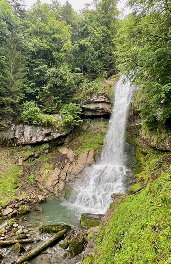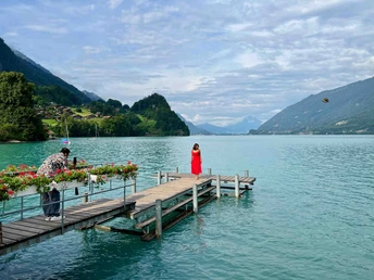 Die Wanderung von Iseltwald bis Giessbach ist nicht allzu lang, sodass neben der Bewegung genug Zeit für andere Genüsse bleibt, etwa für die An- oder Rückreise mit dem Schiff oder für eine längere Grillpause unter dem Blätterdach des Uferwaldes. Wenn der See eine gewisse Temperatur erreicht hat – was beim Brienzersee immer etwas länger dauert als bei anderen Schweizer Gewässern –, können Wasserratten auch die Badesachen einpacken. In Iseltwald lohnt sich ein Blick auf einen Schiffsteg, der vor etwa zwei Jahren weltberühmt wurde, als er in einer Szene in einer koreanischen Netflix-Serie zu sehen war. Auch wenn der Strom an selfievernarrten Touristen inzwischen etwas abgeflaut ist, nutzen immer noch täglich herausgeputzte Asiatinnen den Schiffsteg als Laufsteg,um sich fotografieren und filmen zu lassen. Ruhiger wird es auf dem Uferweg bis Giessbach. Wunderschön sind die Blicke über den See, zur Schneckeninsel und hin über zum Brienzergrat. Spannend sind Abschnitte unter überhängenden Felsen oder durch einen Tunnel. Bei Gloota, etwa auf halbem Weg zwischen Iseltwald und Giessbach, ist ein einladender Grillplatz eingerichtet. Bis kurz vor Giessbach folgt der Weg nahe dem Wasser, dann erst steigt er hinauf zum historischen Grandhotel Giessbach, wo es sich nicht nur edel residieren, sondern auch schlicht einen Kaffee auf der Terrasse geniessen lässt. Danach ist der markierte Rundweg zu den einzigartigen Giessbachfällen, mit einem Steg hinter einem Fall hindurch, ein absolutes Muss. Zuletzt sind es noch rund zwanzig Minuten Fussweg zur Postautohaltestelle. Wer länger wandern möchte, kann noch etwa eine Stunde entlang dem Brienzersee bis Brienz weitergehen. Auf dieser Strecke gibt es zwar einigen Hartbelag, aber insgesamt ist es ein lohnender Weg.