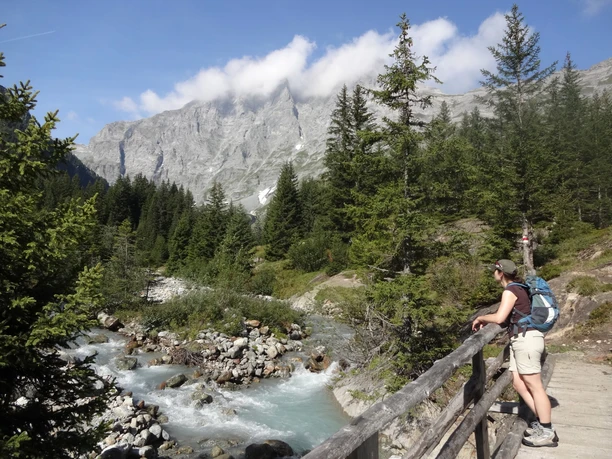 Nous revenons à la bifurcation de l'alpage et choisissons le chemin montant vers la cabane de montagne Läger. En douceur, avec des montées et descentes, nous continuons via Schmadribach jusqu'à la Lütschine Blanche. De l'autre côté du ruisseau, nous tournons à droite à la jonction 'Tal' (P.1522). Une courte montée raide mène à la jonction Wildi Egg. Ici, nous choisissons la destination Obersteinberg. La maison d'hôtes accueillante nous reçoit après une belle montée à travers une forêt magnifique et de beaux pâturages alpins.