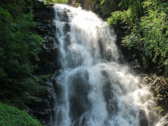 De l'arrêt Bramisegg, on fait une large boucle jusqu'à la Schweibenalp, puis on descend en de nombreux lacets vers le Giessbach. Le bruit du torrent et des cascades se fait entendre dans la gorge, et l'on aperçoit sans cesse les chutes écumantes. Sur 14 niveaux et environ 500 mètres de dénivelé, les chutes de Giessbach se jettent dans le lac de Brienz. Cette première partie est impressionnante, mais raide et rude, et donc seulement adaptée aux randonneurs expérimentés. Pour ceux qui préfèrent des chemins plus faciles – et aussi pour les enfants – il est préférable de commencer la randonnée à l'arrêt «Abzweigung Giessbach».