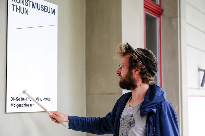 Für den mobilen Cityguide ThunThunThun hat der Perkussionist Julian Sartorius ein Line-Up aus seiner Heimatstadt generiert. Es ist ein Line-Up für einen Klangspaziergang der besonderen Art, denn sonst ist der bekannte Künstler weltweit auf Konzerten zu sehen, u.a. zusammen mit Künstlern wie Sophie Hunger, Matthew Herbert, Sylvie Courvoisier. Eine Stunde Zeit und offene Ohren, das brauchen Besucher auf der zugehörigen Webseite thunthunthun.ch. Du startest beim Kunstmuseum Thun, laufst dem GPS-Signalpunkt folgend die Stationen auf der mobilen Karte ab und wirst von neun Tracks begleitet. Diese schalten sich frei, sobald man am richtigen Fleck steht. Dann erklingen die Drumsticks von Julian Sartorius, welche Fensterrahmen, Brunnen, Gullys und Geländer getroffen haben, um eine Stadt aus Klängen zu erschaffen.